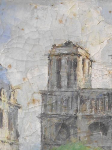 Oil painting on broken board after estoration