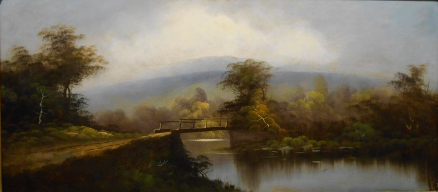 Humidity and shrinking had caused this c.1900 naive Hudson River School painting on canvas to rip itself apart.  It was lined onto a layer of polyester canvas and then onto a rigid board.  After cleaning, repairing the tears and in-painting the paint losses, a final coat of non-yellowing varnish brought out all of the beautiful details.